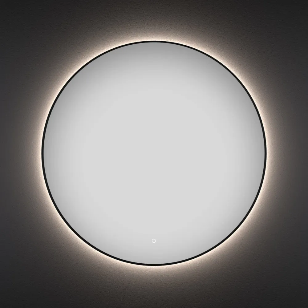 Влагостойкое зеркало с подсветкой для ванной комнаты Wellsee 7 Rays' Spectrum 172200180, диаметр 100 см, сенсор, с черным матовым контуром (настенное зеркало с фоновой LED-подсветкой на стену)