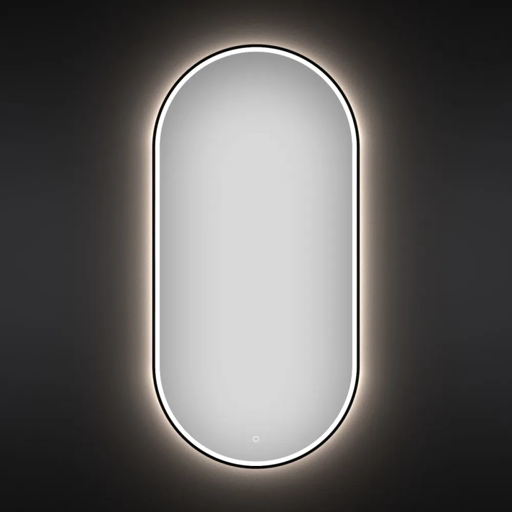 Влагостойкое зеркало с подсветкой для ванной комнаты Wellsee 7 Rays' Spectrum 172201580, размер 40 х 80 см, сенсор, с черным матовым контуром (настенное зеркало с яркой фронтальной LED-подсветкой)
