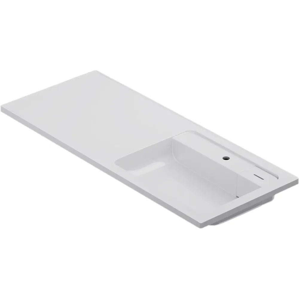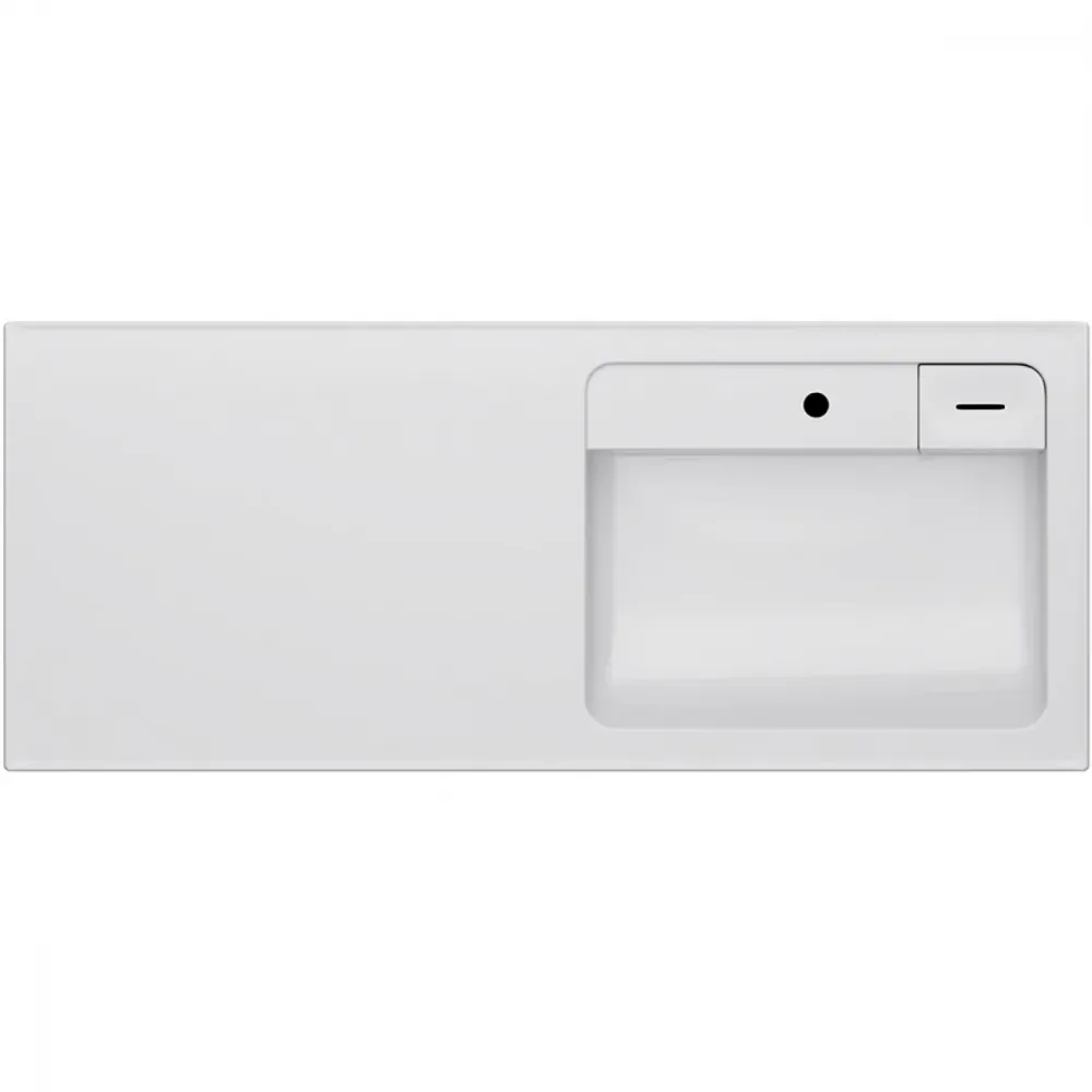 Подходит для интеграции с узкими стиральными машинами (глубиной от 32 до 45 см). Дизайнерская раковина из литьевого мрамора белоснежного цвета с бортиком, скрытым сливом и съемной мыльницей. Раковина оснащена просторной столешницей, на которой можно разместить косметические и гигиенические средства. Столешница защищает стиральную машину от повреждений и механических воздействий.