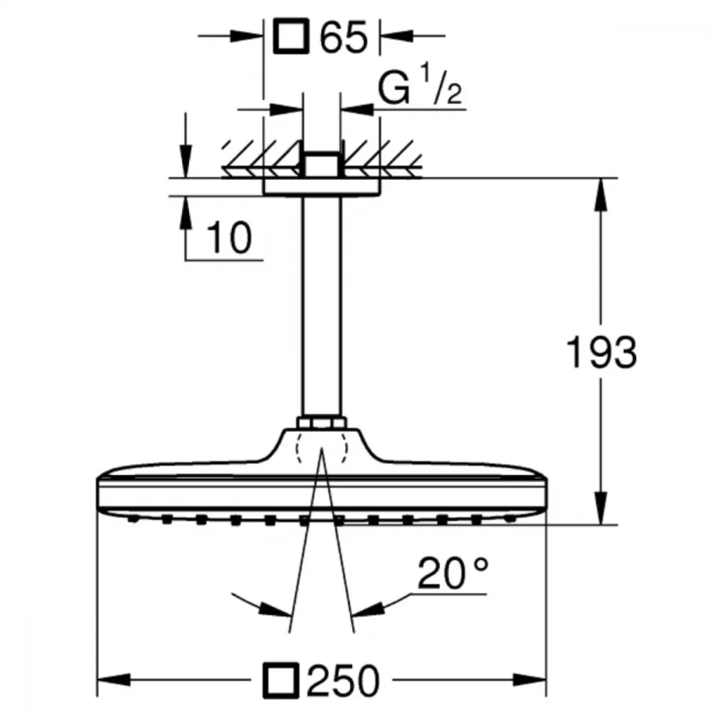 - душевой кронштейн потолочный 142 мм (27 485) с квадратной розеткой