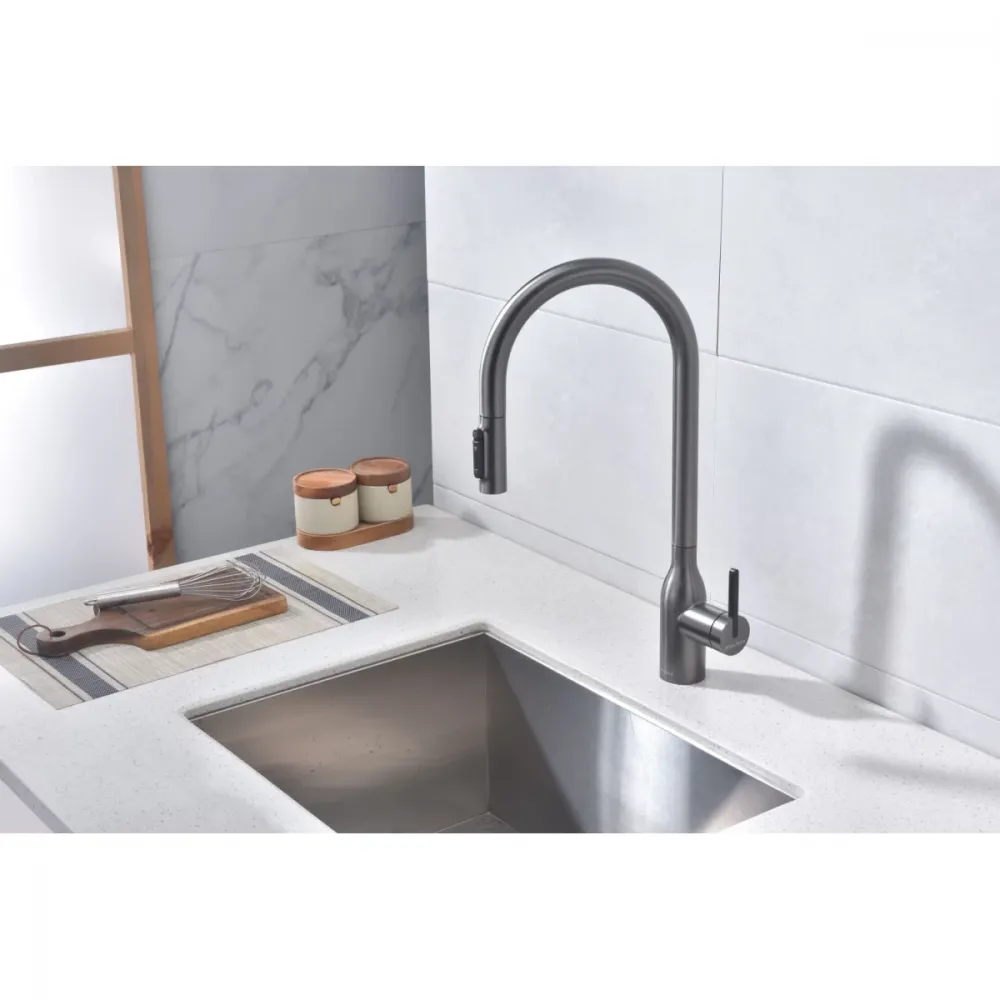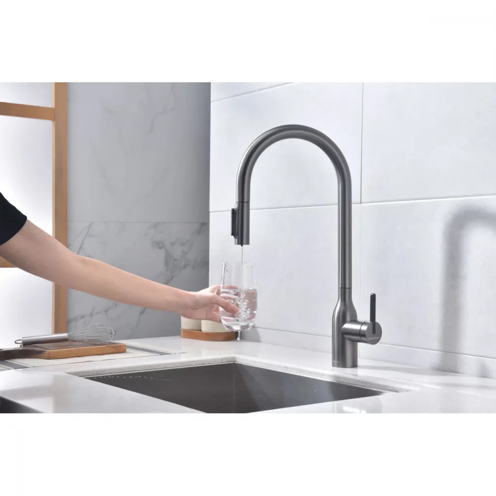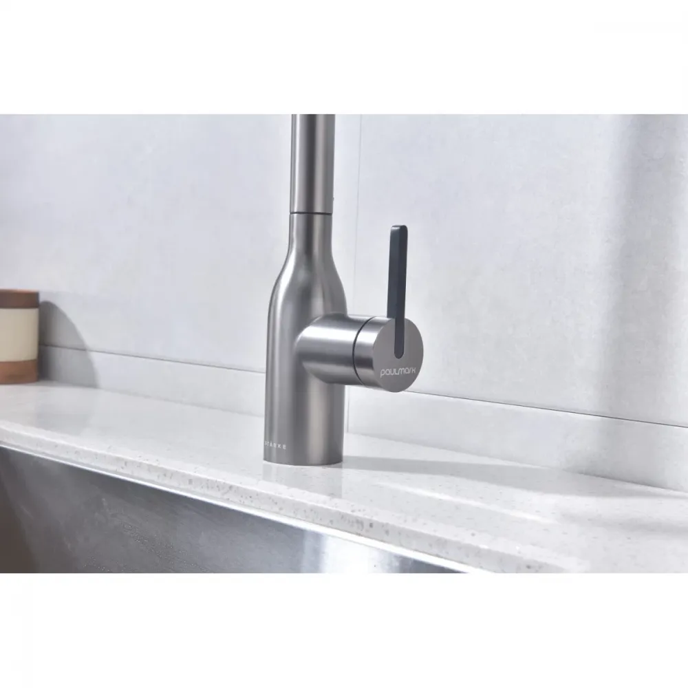 Смеситель для кухни Paulmark Universal Un213880-GM с подключением к фильтру, выдвижным изливом, вороненая сталь