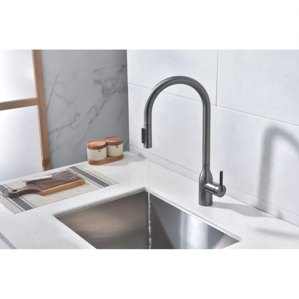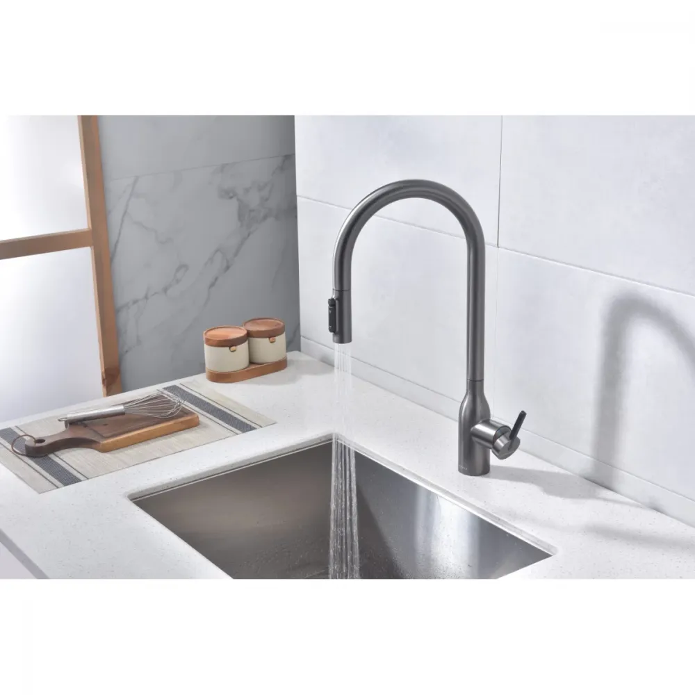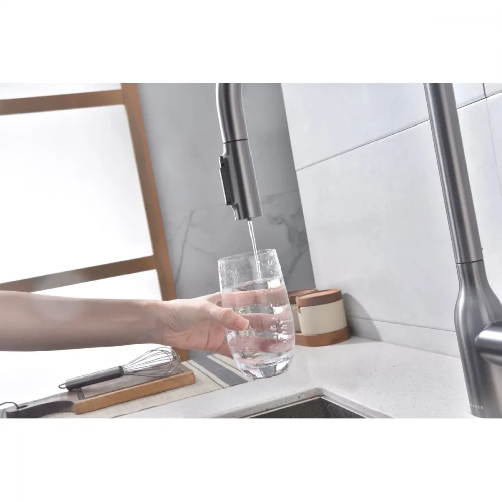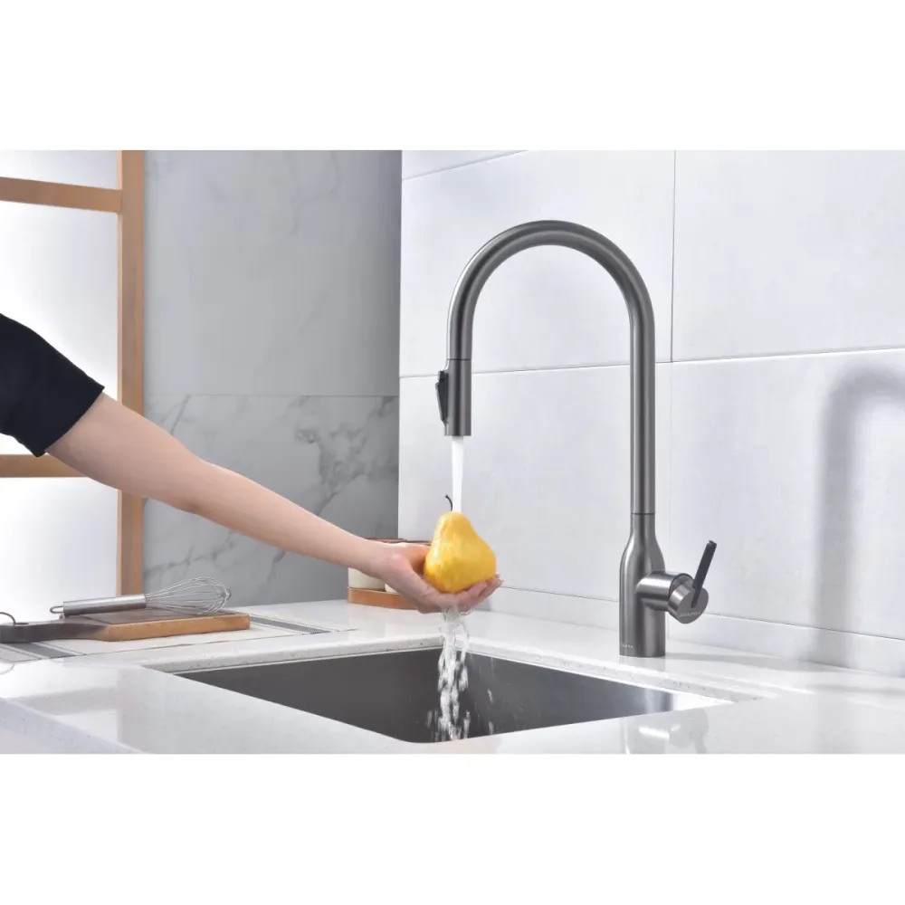 Смеситель для кухни Paulmark Universal Un213880-GM с подключением к фильтру, выдвижным изливом, вороненая сталь