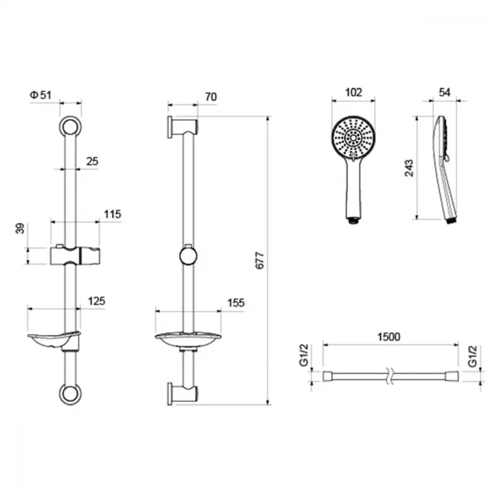 Крепление, Аэратор, Гибкая подводка, Металлическая розетка, Эксцентрики, Душевой шланг, Душевая лейка, Держатель для душевой лейки, Смеситель, Мыльница, Штанга душевая