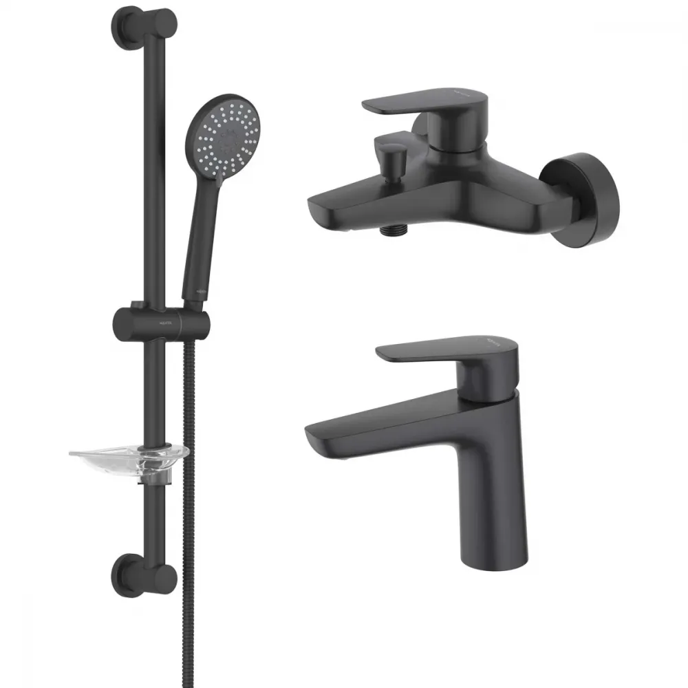 Комплект смесителей Aquatek Бетта AQ1130MB с душевым гарнитуром, черный матовый