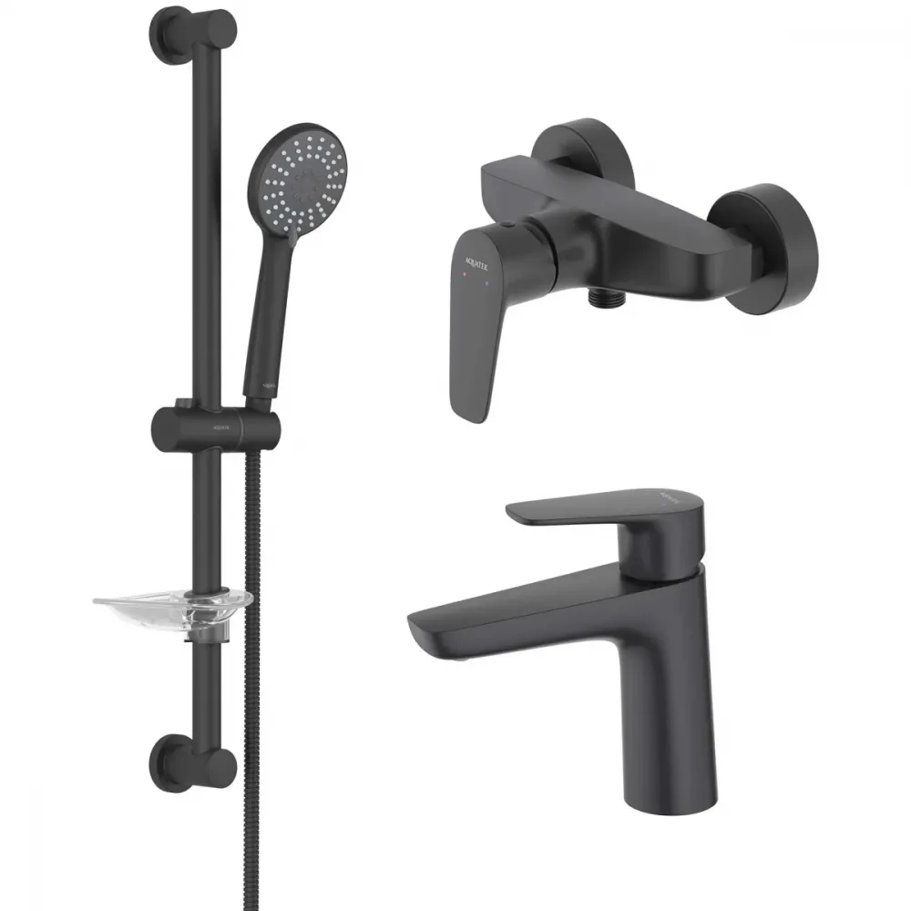 Комплект смесителей Aquatek Бетта AQ1131MB с душевым гарнитуром, черный матовый