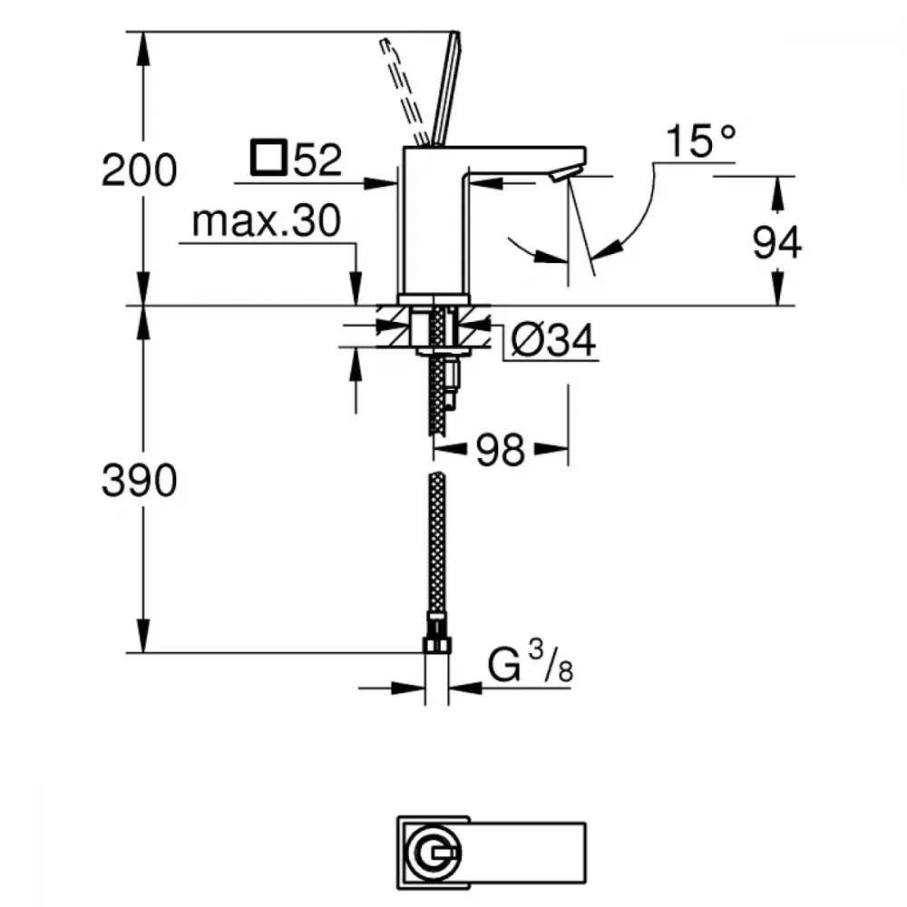 Смеситель для раковины без донного клапана Grohe Eurocube Joy 23656000