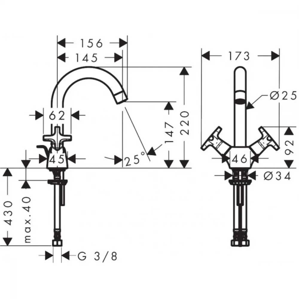 - угол поворота излива: 120°