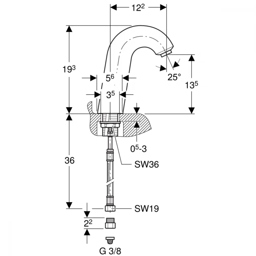 Сенсорный смеситель для раковины Geberit тип 60, питание от батареи, с миксером и ручкой 115.723.21.1