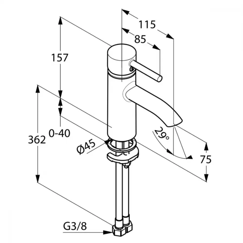 Смеситель для раковины без донного клапана Kludi Bozz 382900576