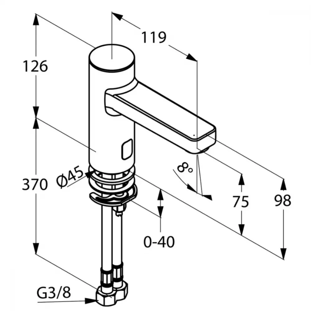 Смеситель для раковины электроннный 9V без донного клапана Kludi Zenta 3810205