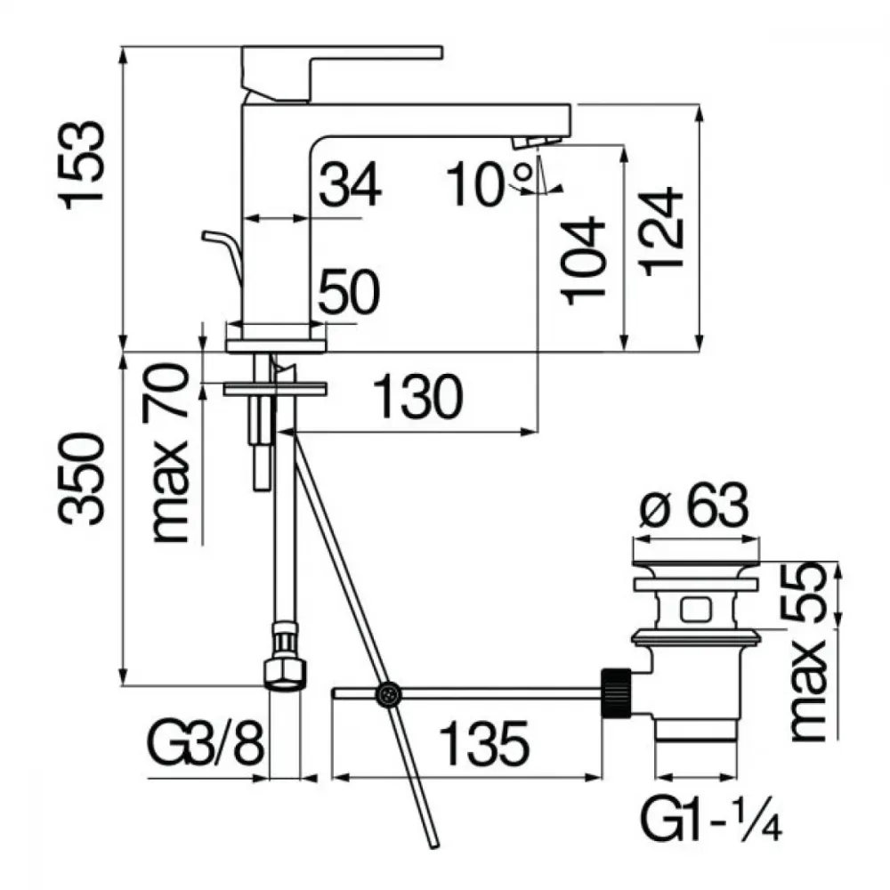 Смеситель для раковины Nobili Up UP94118/1BM с донным клапаном, черный матовый