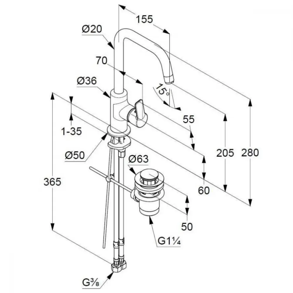 Крепление, Аэратор, Гибкая подводка, Донный клапан