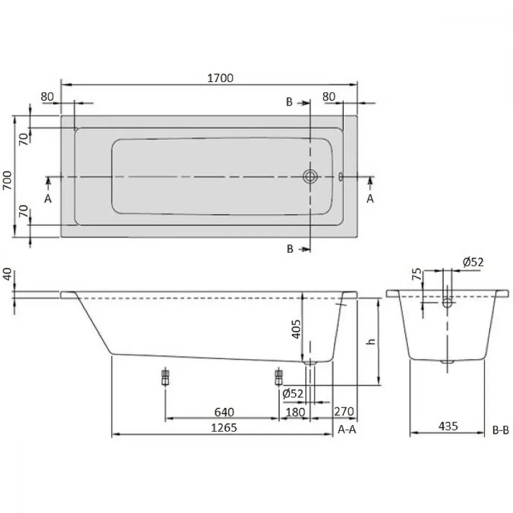 Акриловая ванна 170x70 см Villeroy & Boch Targa Plus Mono UBA177NES2V01+U99740000