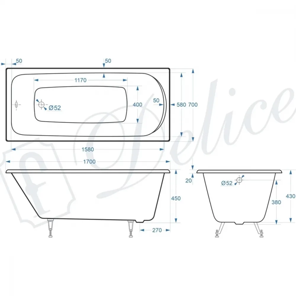 Ванна чугунная Delice Fusion DLR230647 170x70 см, белый