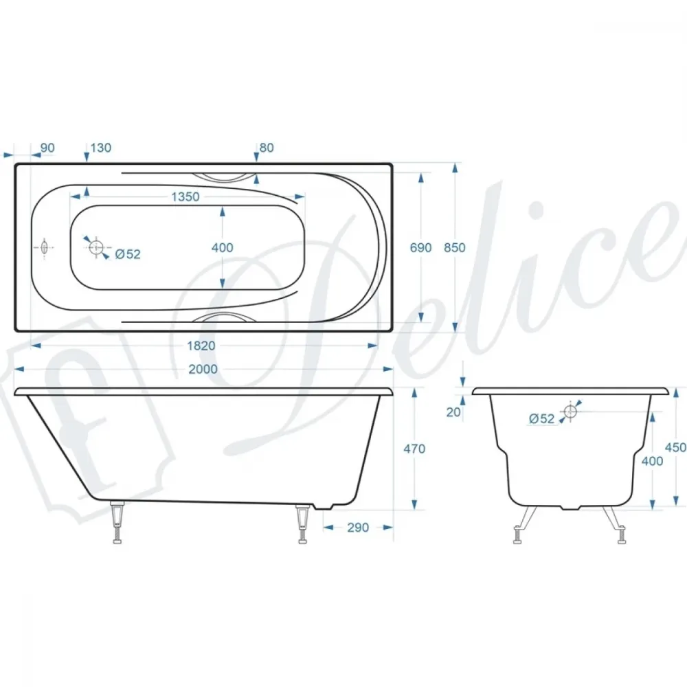 Ванна чугунная Delice Maestro DLR230646R 200x85 см, с отверстиями под ручки, белый
