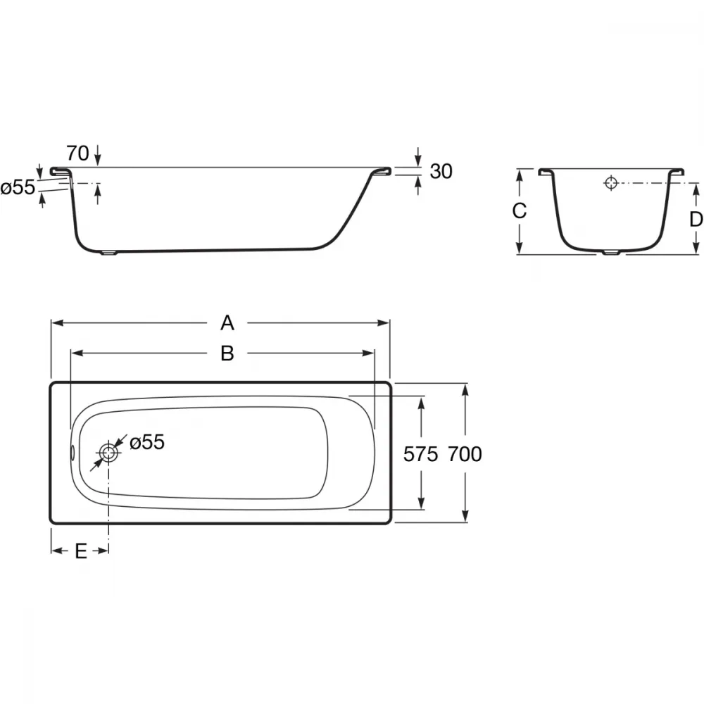 Ванна стальная Roca Contesa 23596000O 160x70 см, белый